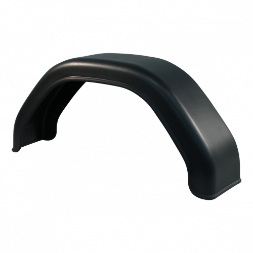 Stevig en duurzaam zwart kunststof spatbord, speciaal geschikt voor Amerikaanse boottrailers met een brede bandmaat. Ideaal voor gebruik bij enkelassige trailers en bestand tegen zware omstandigheden zoals water, vuil en steenslag.