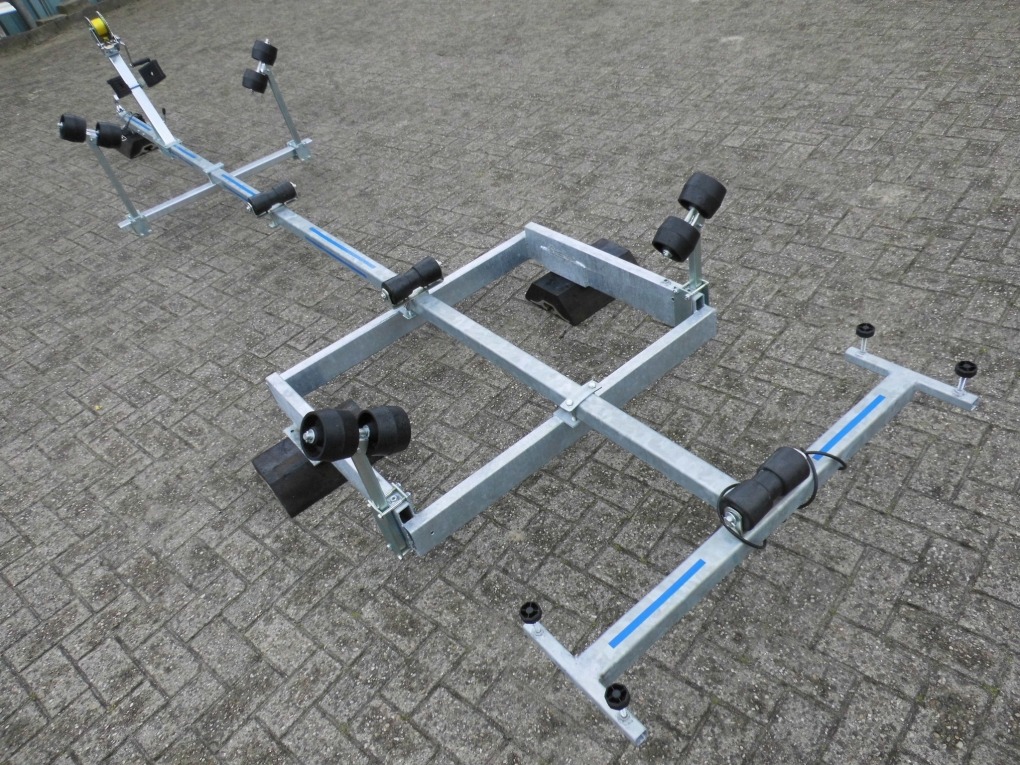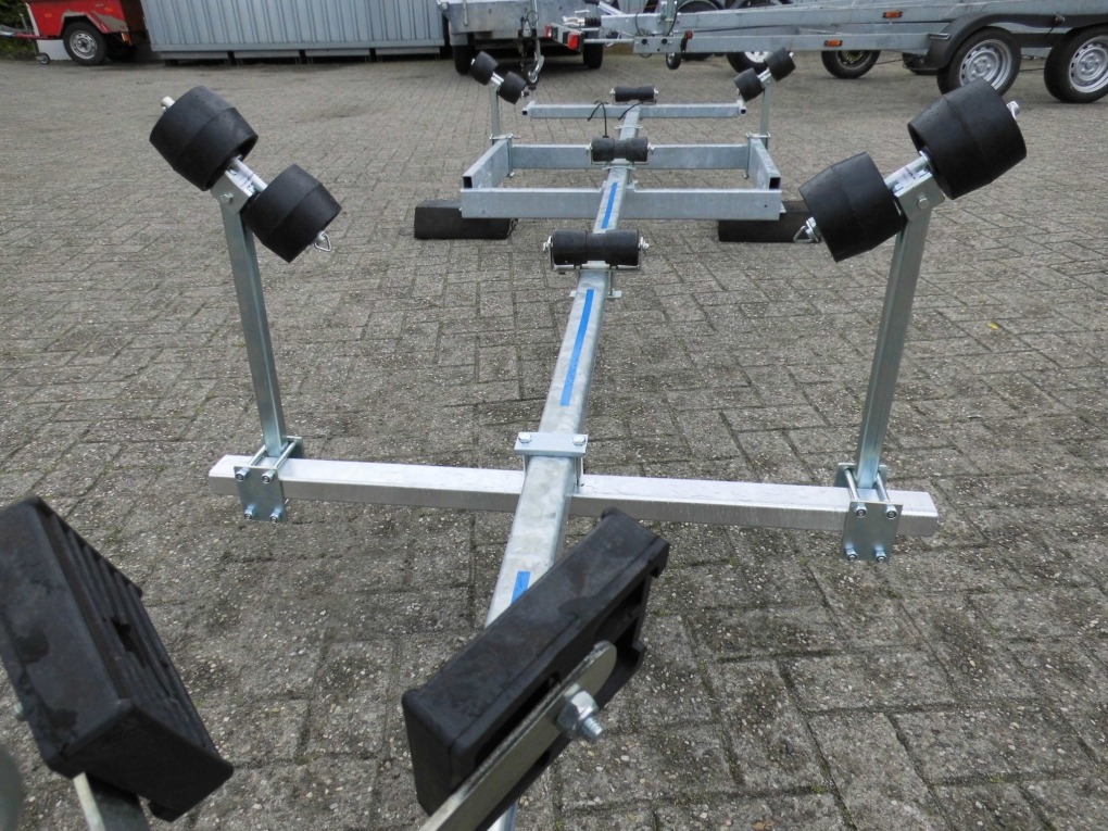 De trailerbok is voorzien van 3 kielrollen van 190 mm en voor- en achterop voorzien van een set kimrollen.
